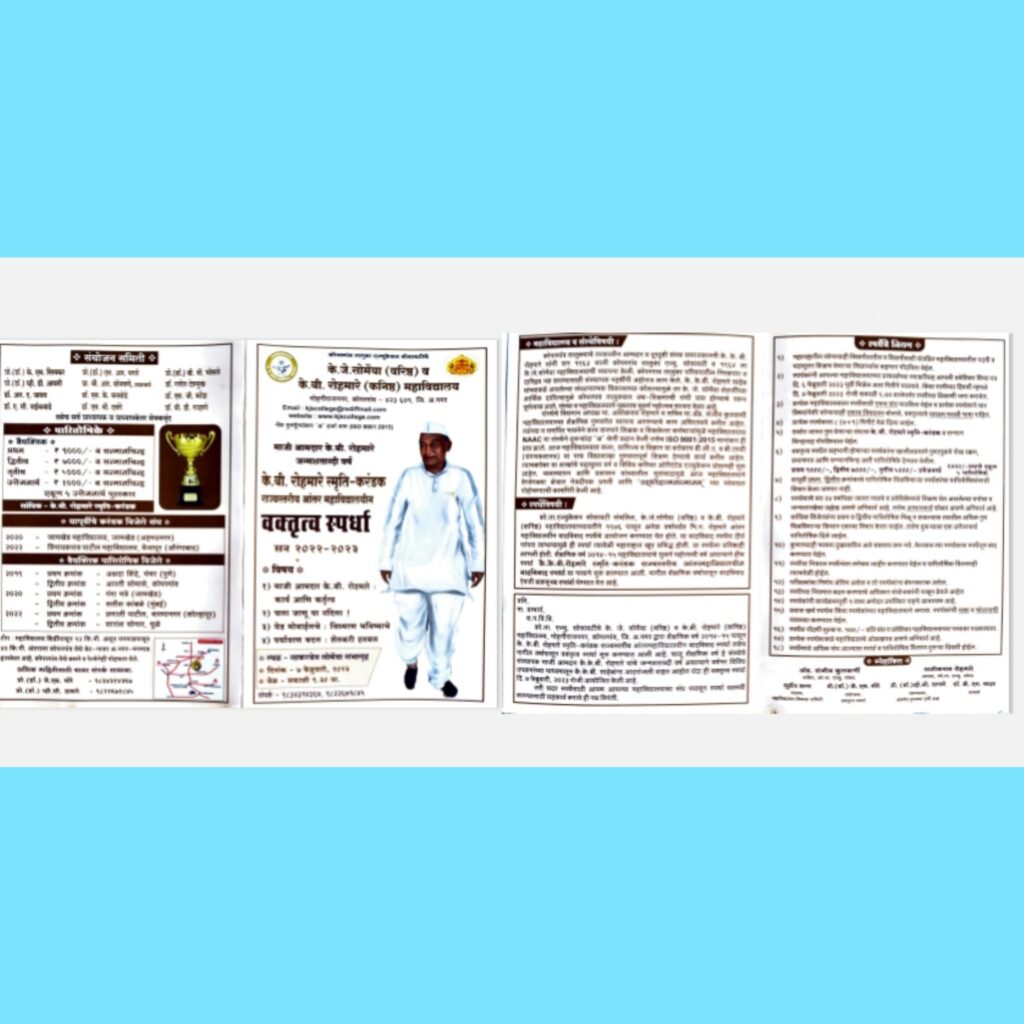 “स्थानिक के. जे. सोमैया व के. बी. रोहमारे महाविद्यालयात कोपरगाव तालुक्याचे माजी आमदार के. बी. रोहमारे जन्मशताब्दीचे (१९२२-२०२२) औचित्य साधून राज्यस्तरीय आंतर महाविद्यालयीन वक्तृत्व स्पर्धा यावर्षी मंगळवार दि. ७ फेब्रुवारी, २०२३ रोजी भव्य प्रमाणात संपन्न होणार आहे.” अशी माहिती संस्थेचे अध्यक्ष, अशोकराव रोहमारे व सचिव ऍड. संजीव कुलकर्णी व प्राचार्य डॉ. बी. एस. यादव यांनी केले.