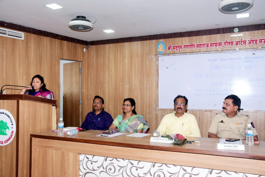 सदर कार्यक्रमाच्या अध्यक्षस्थानी महाविद्यालयाचे प्र.प्राचार्य डॉ.आर.आर.सानप हे होते. अध्यक्षीय मार्गदर्शन करताना त्यांनी सांगितले की, “आज इतक्या सुविधा, कायदे, अधिकार प्राप्त आहेत की, त्यामुळे निर्भय कन्या अभियान/ प्रशिक्षण कार्यक्रमाची गरजच नाही. स्त्री मनाने सक्षम होण्याची गरज आहे.स्त्रियांच्या संख्येसोबत संघटन महत्त्वाचे आहे.इंदिरा गांधी, द्रौपदी मुर्मू, श्रीलंकेच्या श्रीमती भंडारनायके, मार्गारेट थॅचर, सर्वात बुद्धिमान ठरलेली भारतीय वंशाची मुलगी नताशा ही उदाहरणे, बौद्धिक उंची हेच स्त्रीचे सामर्थ्य, सौंदर्य व सबलीकरण दाखविणारी आहेत. हे स्त्रियांनी लक्षात घ्यावे. तसेच पुरुषांनीही F.R.I चे आपल्या जीवनावर होणारे दुष्परिणाम वेळीच ओळखावे.”