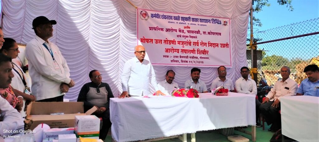 कोळपेवाडी वार्ताहर :- कर्मवीर शंकरराव काळे सहकारी साखर कारखाना व प्राथमिक आरोग्य केंद्र, चासनळी यांच्या सहकार्याने कारखान्याचे चेअरमन आ. आशुतोष काळे यांच्या मार्गदर्शनाखाली आयोजित करण्यात आलेल्या मोफत सर्व रोग निदान आरोग्य तपासणी शिबिराच्या माध्यमातून ऊस तोडणी कामगारांची तपासणी करून औषधोपचार करण्यात आले असल्याची माहिती कारखान्याचे कार्यकारी संचालक सुनिल कोल्हे यांनी दिली आहे.