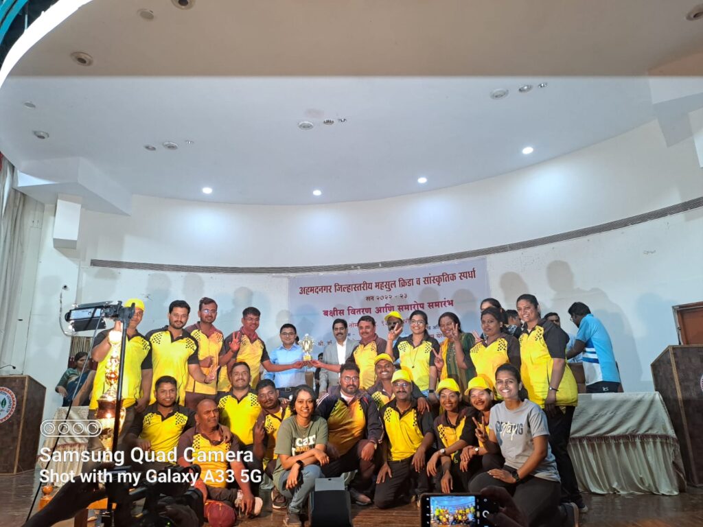 (शिर्डी):- महसूल विभागाच्या जिल्हास्तरीय क्रीडा व सांस्कृतिक स्पर्धेत प्रवरा पॅंथर्स संघाने सर्वसाधारण विजेतेपद पटकाविले. राहूरीच्या महात्मा फुले कृषी विद्यापीठाच्या मैदानावर १२ व १३ फेब्रुवारी २०२३ रोजी या स्पर्धा घेण्यात आल्या.