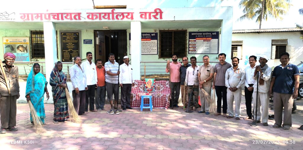 कोपरगाव तालुक्यातील ग्रामपंचायत कार्यालय, जय बाबाजी भक्त परिवार व राहुल ( दादा ) मधुकरराव टेके पाटील चॅरिटेबल ट्रस्ट, वारी यांच्या संयुक्त विद्यमाने देशाचे अमृत महोत्सवी वर्षानिमित्त महाश्रमदानातून गेली ५० आठवडे अखंडितपणे स्वच्छता अभियान राबविण्यात येत आहे. गुरुवारी ( दि.२३ ) राष्ट्रसंत गाडगे महाराज जयंतीनिमित्त ५१ व्या सप्ताहातून गावातील प्रमुख व अंतर्गत रस्ते, शाळा, ग्रामपंचायत, बँक, तलाठी कार्यालय, प्राथमिक आरोग्य केंद्र यासह सर्वच सार्वजनिक ठिकाणी सकाळी ६ ते १० या वेळेत विशेष स्वच्छता अभियान राबवून शेवटी ग्रामपंचायत कार्यालयासमोर संत गाडगे महाराजांच्या प्रतिमेला पुष्पहार अर्पण करून अभिवादन करण्यात आले.