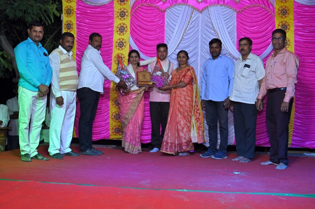२) मोठेबाबावाडी जिल्हा परिषद प्राथमिक शाळेतील शिक्षक अभिजीत आगलावे यांना ग्रामस्थांनी आदर्श शिक्षक पुरस्कार देऊन सन्मानित केले.