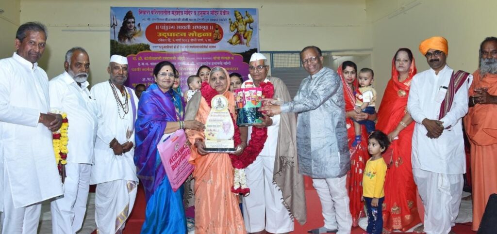 प्रसंगी राघवेश्वरानंदगिरी महाराज आणि समता परिवाराचे संस्थापक ओमप्रकाश दादाप्पा तथा काका कोयटे यांच्या हस्ते पांडुरंग सावली सभा मंडपासाठी ज्यांन दातृत्व बहाल केले असे समता पतसंस्थेचे संचालक श्री.कांतीलाल जोशी यांचा सत्कार करण्यात आला.कोपरगाव शहरातील ज्येष्ठ नागरिक संघाचे श्री.विजय बंब पदाधिकरी आणि निवारा परिसरातील श्रेष्ठ नागरिक मित्र मंडळाच्या वतीने अध्यक्षा श्रीमती पुष्पलता सुतार यांनी ही श्री.कांतीलाल जोशी यांच्या दातृत्वाबद्दल सत्कार करत सन्मान केला.तसेच ९६ दिवसात पायी नर्मदा परिक्रमा पूर्ण केल्याबद्दल निवारा परिसरातील ह.भ.प. बाळकृष्ण महाराज सुरासे व श्री. बापूसाहेब इनामके यांचे संतपुजन करत तसेच शैक्षणिक क्षेत्रात विद्यादानाचे कार्य प्रामाणिकपणे करून निवारा परिसरातील १८ सेवानिवृत्त शिक्षक आणि विद्यादानाचे काम करताना स्वतःतील कला – गुणांद्वारा राज्यस्तरीय पुरस्कार मिळविणाऱ्या ४ शिक्षक आणि निवारा परिसरातील ज्येष्ठ नागरिक म्हणून वयाची ८४ वर्ष पूर्ण करणारे श्री.जगन्नाथ बैरागी आणि त्यांच्या पत्नी सौ.सुमन बैरागी यांचा भव्य सत्कार निवारावासियांचे मार्गदर्शक काका कोयटे व महादेव मंदिर व्यवस्थापन समिती अध्यक्षा सौ.सुहासिनी ओमप्रकाश कोयटे यांच्या हस्ते करून सन्मान करण्यात आला. तसेच ह.भ.प.विकास महाराज गायकवाड यांनी किर्तन रुपी सुश्राव्य वाणीतून ज्ञान आणि भक्तीचा मेळ घालत निवारावासियांच्या धार्मिक भावना वाढविल्या.