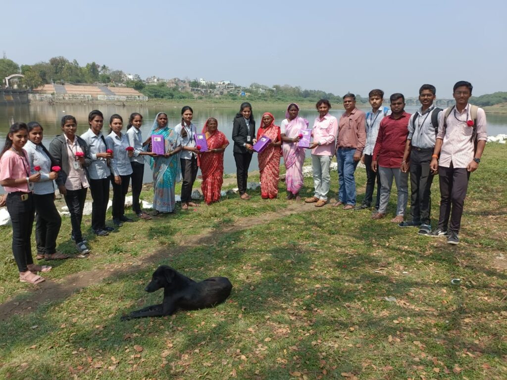 ८ मार्च जागतिक महिला दिनाच्या निमित्ताने गोदामाई प्रतिष्ठान ट्रस्ट च्या वतीने अनोखा उपक्रम करण्यात आला उन्हाळा,पावसाळा आणि हिवाळा या ऋतूमध्ये जिवाची पर्वा न करता गोदावरी नदीच्या पात्रात सोडलेल्या रक्षा मधून पैसे शोधून आपल्या कुटुंबाचा उदरनिर्वाह चालवत असणाऱ्या महिलाचा छोटेसे गिफ्ट आणि गुलाब पुष्प देऊन सत्कार करण्यात आला व महिला दिनाच्या कोटी कोटी शुभेच्छा दिल्या.