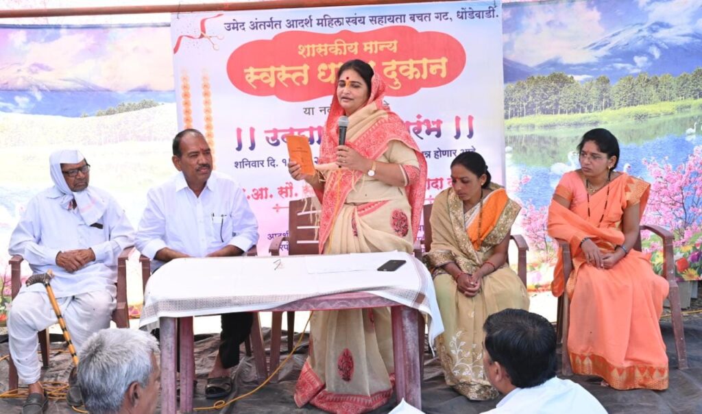 संजीवनी महिला स्वयंसहाय्यता बचत गटाच्या माध्यमातून कोपरगाव तालुक्यात मोठ्या प्रमाणावर महिला बचत गटांची स्थापना करण्यात आली आहे. या महिला बचत गटांच्या माध्यमातून महिलांना स्वयंरोजगार उपलब्ध करून देण्याबरोबरच आर्थिकदृष्ट्या स्वावलंबी बनवण्याचे काम मोठ्या प्रमाणात सुरू आहे. धोंडेवाडी येथे नव्याने सुरू झालेले हे सरकारमान्य स्वस्त धान्य दुकान आदर्श महिला स्वयंसहाय्यता बचत गटामार्फत चालविण्यात येणार आहे. या स्वस्त धान्य दुकानामुळे गावकऱ्यांना शासकीय दरात धान्य उपलब्ध होणार आहे. मुख्यमंत्री एकनाथ शिंदे व उपमुख्यमंत्री देवेंद्र फडणवीस यांच्या सरकारने गोरगरीब कुटुंबांची दिवाळी गोड करण्यासाठी अवघ्या १०० रुपयांत एक लिटर पामतेलासह प्रत्येकी एक किलो रवा, साखर आणि हरभरा डाळ असा आनंदाचा शिधा रेशन दुकानाच्या माध्यमातून वितरीत केला होता. आता भारतरत्न डॉ. बाबासाहेब आंबेडकर यांच्या जयंतीचे औचित्य साधून पुन्हा एकदा १०० रुपयांत आनंदाचा शिधा वाटप करण्याचा निर्णय शिंदे-फडणवीस सरकारने घेतला असून, यामध्ये प्रत्येकी एक किलो रवा, हरभरा डाळ, साखर, एक लिटरची पामतेलाची पिशवी असे किट दिले जाणार आहे. याचा गरजू नागरिकांनी लाभ घ्यावा, असे आवाहन स्नेहलताताई कोल्हे यांनी केले.