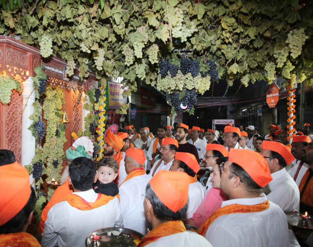 चैत्र महोत्सवानिमित्त श्री सप्तश्रृंगी माता मंदिराला ४०० किलो द्राक्षांची सुंदर आरास करण्यात आली होती. रविवारी रात्री श्री सप्तश्रृंगी मातेचे प. पू. रमेशगिरी महाराज, ह.भ.प. गणपतराव लोहाटे महाराज आणि युवा नेते विवेकभैय्या कोल्हे यांच्या हस्ते विधिवत पूजन करून महाआरती करण्यात आली. यावेळी विवेकभैय्या कोल्हे यांनी श्री सप्तश्रृंगी मातेचे मनोभावे दर्शन घेतले. तसेच प. पू. रमेशगिरी महाराज, ह.भ.प. गणपतराव लोहाटे महाराज यांचे आशीर्वाद घेतले. महाआरतीनंतर महाप्रसादाचा (भंडारा) कार्यक्रम झाला. विवेकभैय्या कोल्हे यांनी उपस्थित भाविक-भक्तांना महाप्रसादाचे वाटप करून त्यांच्यासमवेत महाप्रसादाचा लाभ घेतला.