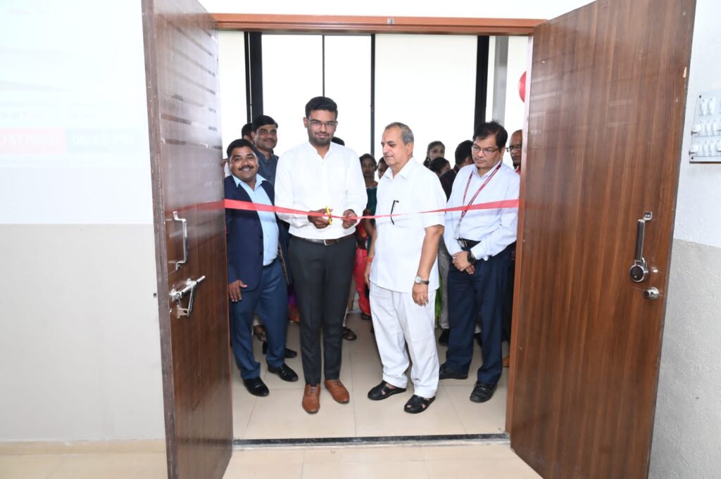 फोटो ओळीः संजीवनी एमबीए विभागात संजीवनी ग्रुप ऑफ इन्स्टिट्यूट्सचे अध्यक्ष श्री नितिनदादा कोल्हे यांचे प्रमुख उपस्थित श्री अजिंक्य जाधव यांचे हस्ते सेंटर ऑफ एक्सलन्स इन फायनांसियल मॅनेजमेंटचे उद्घाटन झाले.