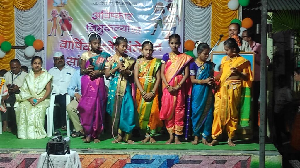 याप्रसंगी चिमुरड्यांनी देवा श्री गणेशा या गीताने श्री गणेशाला साकडं घालत कार्यक्रमाची सुरुवात केली. त्यानंतर मराठमोळ गाणं, एकच राजा, पढोंगे लिखोगे,चला जेजुरीला जाऊ, केळेवाली, गरबा गीत, झुमका वाली पोरं, राजं आल, वंदे मातरम असे विविध गीते सादर करण्यात आली.यानंतर पहिली ते पाचवीच्या विद्यार्थ्यांनी देशभक्तीपर गीते, शेतकरी गीते, लोक गीते, गमतीदार उखाणे सादर करून उपस्थितांचे मन जिंकले.