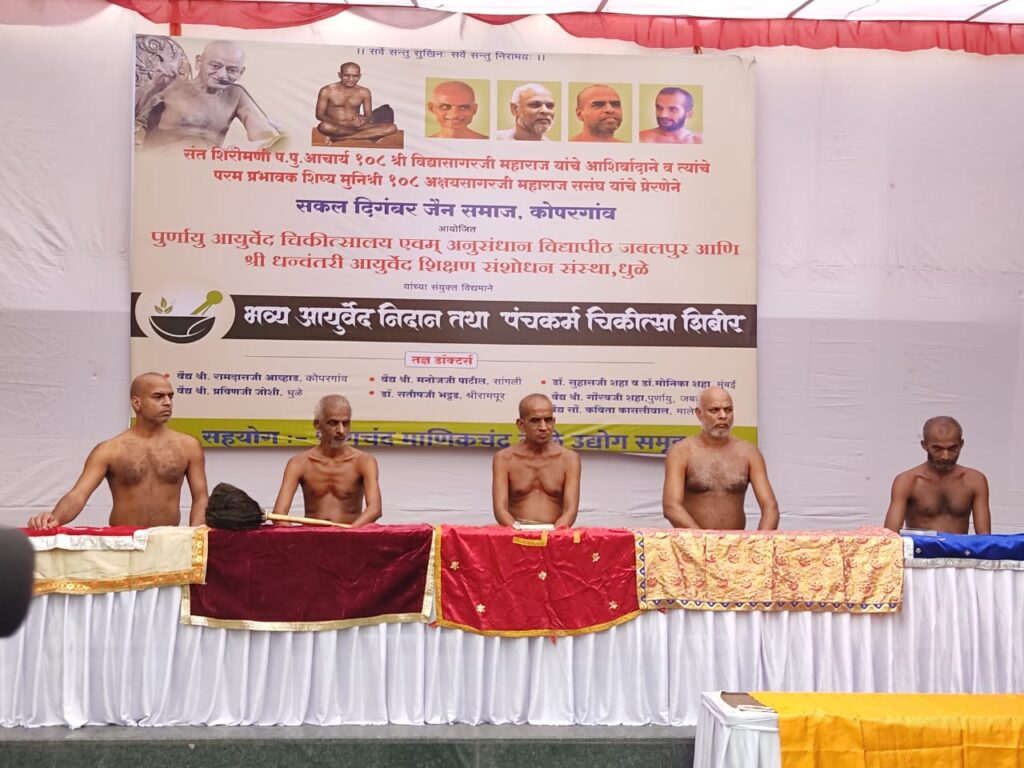कोपरगाव प्रतिनिधी:- सकल दिगंबर जैन समाज कोपरगाव – दिगंबर जैन मुनी अक्षय सागर महाराज यांच्या प्रेरणेने सकल दिगबर जैन समाज कोपरगांव आयोजित पुर्णायु आयुर्वेद BB चिकीत्सालय आणि अनुसंधाना विद्यापीठ जबलपुर आणि श्री धन्वंतरी आयुर्वेद शिक्षण संशोधन संस्था ,धुळे यांच्या संयुक्त विद्यमाने भव्य आयुर्वेद निदान तथा पंचकर्म चिकीत्सा शिबीर शुक्रवार दिनाक २८ एप्रिल ते ३० एप्रिल या कालावधीत व्यापारी धर्मशाळा कोपरगांव येथे मोठ्या उत्साहात सुरू झाले आहे तसेच