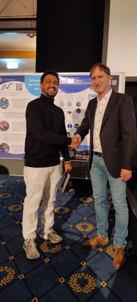 स्टुटगार्ट विद्यापीठ, जर्मनी अर्ड वॉर्डे: प्राध्यापक. डॉ.-आयएनजी स्टीफन टेन ब्रिंक यांचे हस्ते एम एस: मास्टर ऑफ सायन्स इन इंजीनियरिंगही पदवी स्वीकारताना साईप्रसाद सालकर .