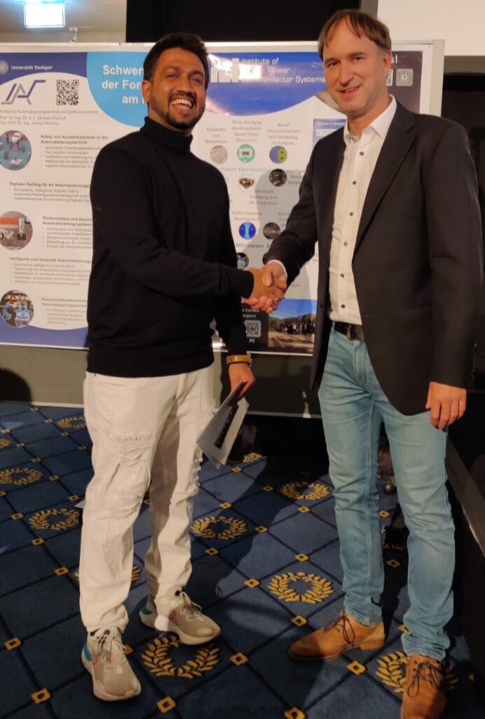 स्टुटगार्ट विद्यापीठ, जर्मनी अर्ड वॉर्डे: प्राध्यापक. डॉ.-आयएनजी स्टीफन टेन ब्रिंक यांचे हस्ते एम एस: मास्टर ऑफ सायन्स इन इंजीनियरिंगही पदवी स्वीकारताना साईप्रसाद सालकर .