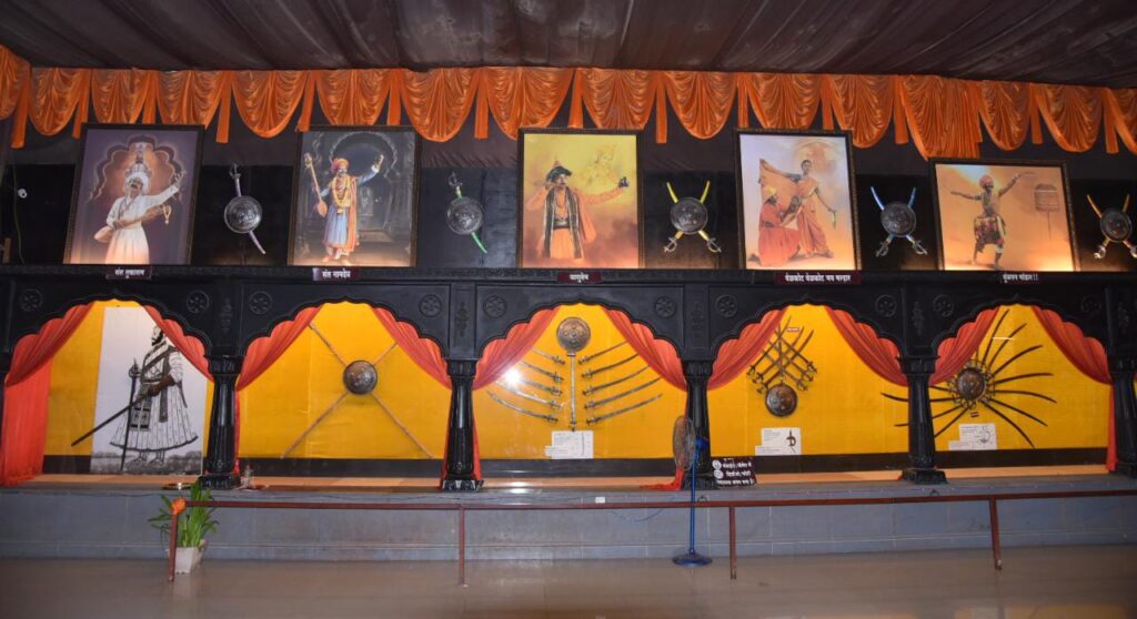 जगदंबा, मराठा , पट्टापान, मुल्हेरी आदी तलवारींच्या प्रतिकृती शिवसृष्टी वस्तूसंग्रहालय प्रदर्शनात मांडण्यात आल्या आहेत. तरंगाल, तोफेचा गोळा, खंजीर, दांडपट्टा, धनुष्यबाण, भाल्याचे विविध प्रकार, चिलखत, वाघनखे, कट्यार, ढाल, आदी शिवकालीन शस्त्रास्त्रांविषयी तसेच विविध तलवारींच्या प्रतिकृतींची शास्त्रशुद्ध माहिती पालकमंत्री श्री.विखे-पाटील यांनी यावेळी जाणून घेतली.