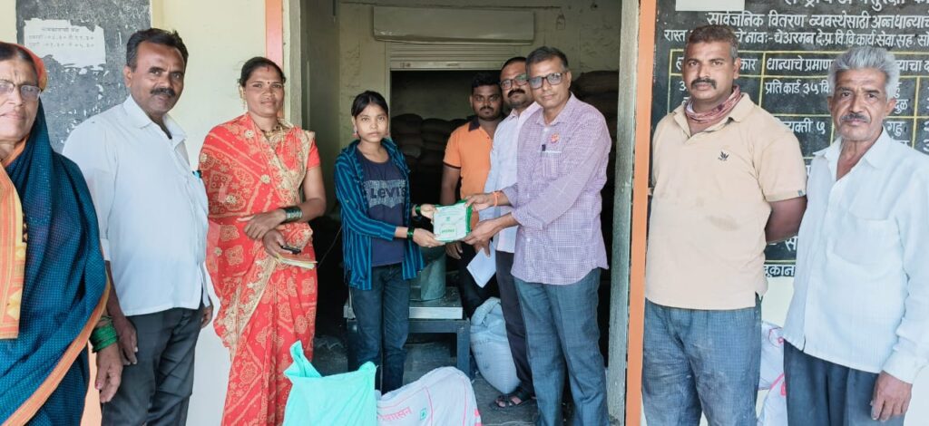 देवळाली प्रवरा येथील रेशन धान्य दुकानातून पहिल्यांदा आरतीला धान्य वितरण प्रसंगी ढूस बोलत होते. प्रसंगी प्रहार श्रमिक सेवा संघाचे सचिव बाळासाहेब कराळे, प्रहार जनशक्ती पक्षाचे देवळाली प्रवरा शहर अध्यक्ष किरण पंडित, उपाध्यक्ष अशोक देशमुख व बहुसंख्य प्रहार कार्यकर्ते उपस्थित होते.