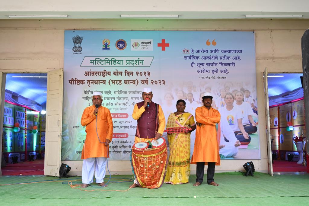 केंद्र सरकारच्या माहिती आणि प्रसारण मंत्रालयाचे केंद्रीय संचार ब्यूरो (अहमदनगर) इंडियन रेड क्रॉस सोसायटी (श्रीरामपूर) व श्रीरामपूर नगरपरिषद यांच्या संयूक्त विद्यमाने आंतरराष्ट्रीय योग दिन व आंतरराष्ट्रीय पौष्टीक तृणधान्य (भरड धान्य ) वर्ष २०२३” निमित्त श्रीरामपूर येथे १९ ते २१ जून कालावधीत मल्टिमिडिया प्रदर्शन व विशेष प्रचार कार्यक्रमाचे उद्घाटन आमदार श्री.कानडे यांच्या हस्ते झाले. त्यावेळी ते बोलत होते.
