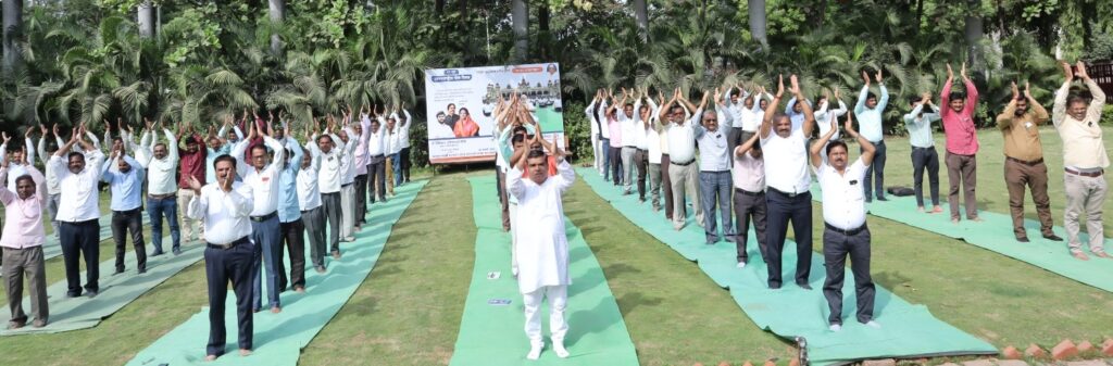 सहकारमहर्षी शंकरराव कोल्हे सहकारी साखर कारखान्याच्या कार्यस्थळावर कार्यकारी संचालक बाजीराव जी. सुतार, सर्व अधिकारी, आदींनी आंतरराष्ट्रीय योगदिनात सहभाग घेतला.