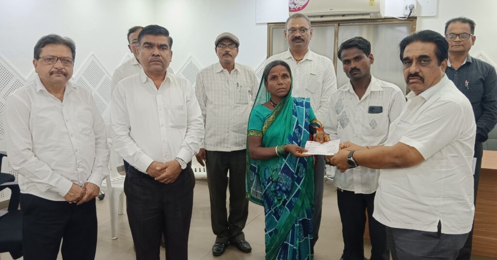 सहकारमहर्षी शंकरराव कोल्हे साखर कारखाना कार्यस्थळावर २०२१.२२ चे हंगामात चाळीसगांव (लोंझातांडा) येथील सुनिल जगत चव्हाण हे उसतोडणीसाठी आले होते, त्यांचा दुर्दैवी मृत्यु झाला. याप्रकरणी अध्यक्ष विवेकभैय्या कोल्हे यांनी संबंधित यंत्रणेला कागदपत्रांची पूर्तता करण्याकामी आदेश दिले. अमृत संजीवनी शुगरकेन ट्रान्सपोर्ट कंपनीचे अध्यक्ष पराग उर्फ बाळासाहेब संधान, मानद कार्यकारी संचालक बापूसाहेब औताडे व त्यांचे सहकाऱ्यांनी तसेच मयत सुनील चव्हाण याच्या कुटुंबीयांनी आवश्यक ती कागदपत्रे विमा कंपनीस दिली. न्यू इंडिया इन्शुरन्स कंपनी कोपरगावच्या श्रीमती खंडेलवाल यांनी याकामी विशेष लक्ष देऊन मयताचे वारसांना तीन लाख रुपयांचा विमा क्लेम मंजूर करणेकामी विशेष परिश्रम घेतले. याप्रसंगी कार्यकारी संचालक बाजीराव जी. सुतार, साखर सरव्यवस्थापक शिवाजीराव दिवटे, ऊस व्यवस्थापक गोरखनाथ शिंदे, ऊस विकास अधिकारी शिवाजीराव देवकर, श्री. निकम आदी उपस्थित होते.