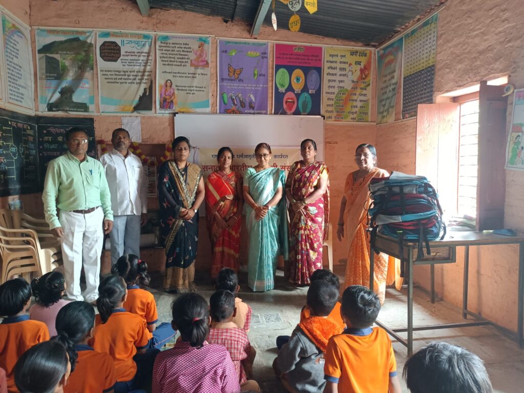 सदर कार्यक्रमाच्या अध्यक्षस्थानी माजी मुख्याध्यापिका सौ. लीलावती जमधडे होत्या. कल्पना सोनवणे यांनी आपल्या मनोगतात – विद्यार्थ्यांनी शैक्षणिक साहित्या अभावी शिक्षण अर्धवट सोडू नये. रोज शाळेत उपस्थित राहून शिक्षण घ्यावे” अशी अपेक्षा व्यक्त केली. अध्यक्षीय भाषणात जमधडे यांनी शालेय संस्कार व सोनवणे मॅडम यांचे दा्तृत्व याबद्दल मनोगत व्यक्त केले.विद्यार्थ्यांचे चेहरे दप्तर बघून आनंदाने उजळून निघाले.सदर कार्यक्रमांस शाळेचे मुख्याध्यापक विलास माळी, सुनिल रहाणे, नसरीन इनामदार,अमोल कडू,शाळा व्यवस्थापन समिती अध्यक्षा पूनम गगे, विद्यार्थी व पालक उपस्थित होते.नसरीन इनामदार यांनी सूत्रसंचलन केले व विलास माळी यांनी आभार मानले .
