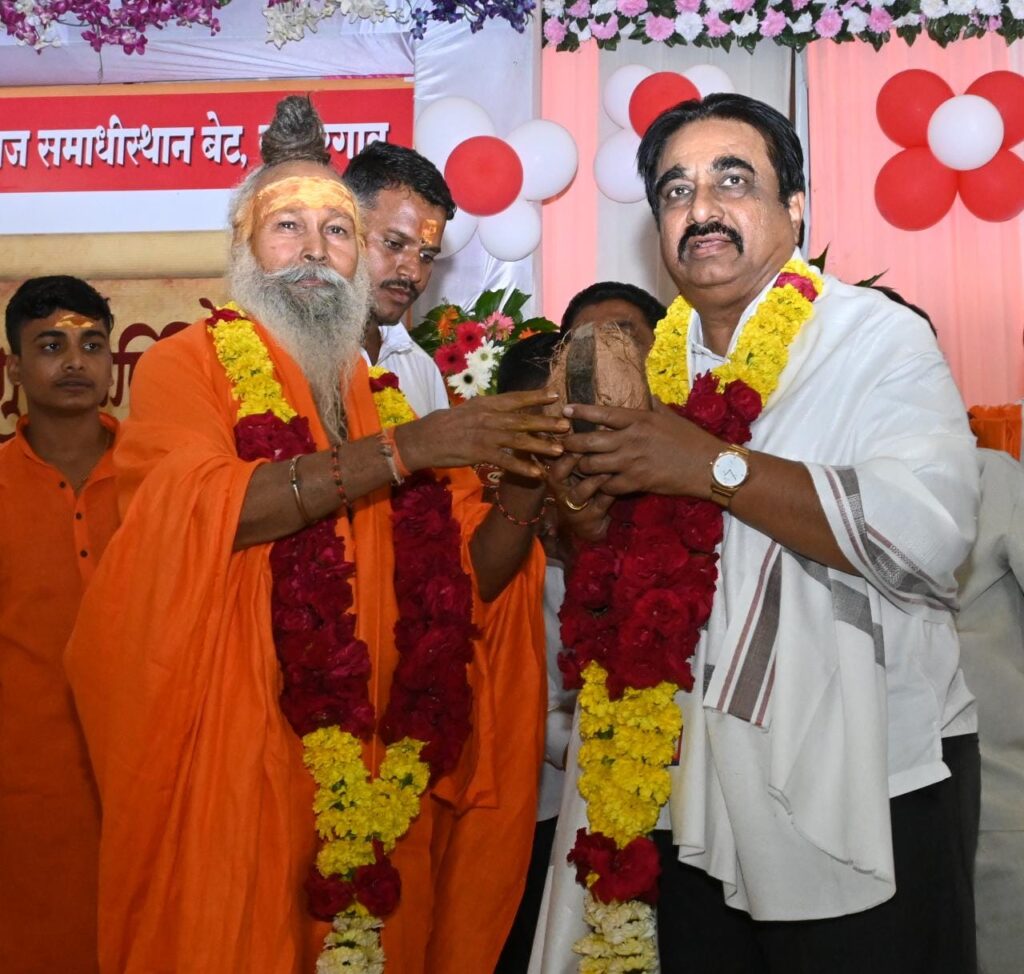 कोपरगाव प्रतिनिधी:- दरवर्षीप्रमाणे यावर्षीही कोपरगाव बेट भागातील राष्ट्रसंत जनार्दन स्वामी (मौनगिरी) महाराज समाधी मंदिरात आज ३ जुलै रोजी गुरूपौर्णिमा उत्सव पारंपरिक पद्धतीने भक्तिमय वातावरणात अनेक साधू-संतांच्या व भाविकांच्या उपस्थितीत मोठ्या उत्साहात साजरा करण्यात आला. गुरूपौर्णिमेनिमित्त संजीवनी उद्योग समुहाचे अध्यक्ष बिपीनदादा कोल्हे यांनी राष्ट्रसंत जनार्दन स्वामी (मौनगिरी) महाराज समाधी स्थानावर जाऊन मनोभावे दर्शन घेतले व राष्ट्रसंत जनार्दन स्वामी महाराज आश्रमाचे मठाधिपती प.पू. रमेशगिरीजी महाराज यांचे संत पूजन केले. तसेच बिपीनदादा कोल्हे यांनी राष्ट्रसंत जनार्दन स्वामी महाराज समाधी मंदिरात गुरुपौर्णिमा उत्सवानिमित्त आयोजित केलेल्या धार्मिक कार्यक्रमात सहभागी होऊन सर्व भाविक-भक्तांना गुरूपौर्णिमा उत्सवाच्या शुभेच्छा दिल्या.