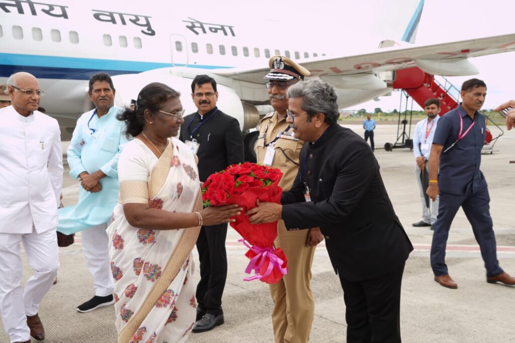 राष्ट्रपती द्रौपदी मुर्मू यांचे शिर्डी विमानतळावर विमानाने आगमन