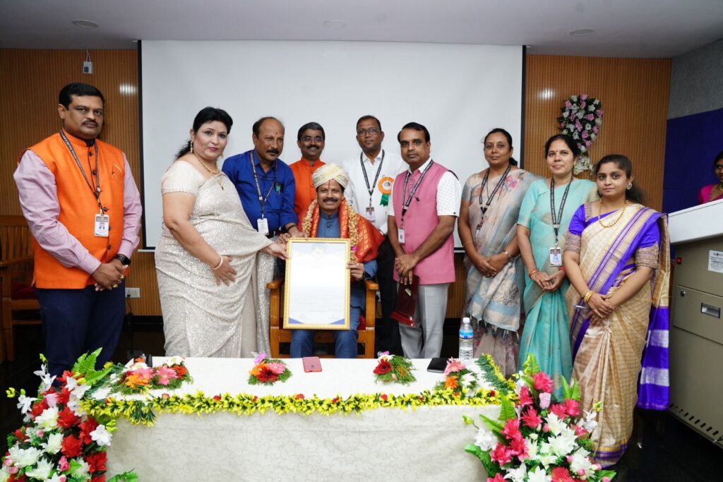 त्यानंतर वैद्य रामदास आव्हाड यांचा कर्नाटक सरकार तर्फे यथोचित ट्रॅडिशनल पद्धतीने सत्कार करण्यात आला .त्यात शाल ,कर्नाटकी पगडी ,स्मृतिचिन्ह ,मानपत्र देऊन सर्व कॉलेज स्टाफ च्या वतीने प्राचार्य श्रीमती फातिमा मॅडम यांचे हस्ते मोठा सत्कार करण्यात आला .त्यावेळी पंचकर्म विभागप्रमुख डॉ राजेश सुगुर ,भारत कौंसिल सदस्य डॉ राजशेखरजी व सर्व स्टाफ उपस्थित होता .