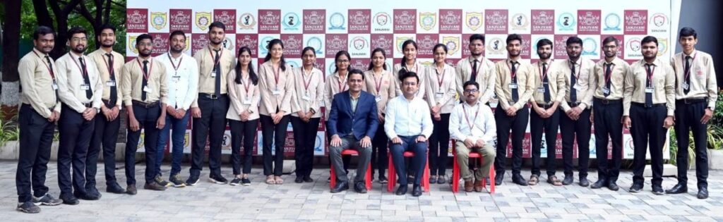 फोटो ओळी:- संजीवनी ग्रुप ऑफ इन्स्टिट्यूट्सचे मॅनेजिंग ट्रस्टी श्री अमित कोल्हे यांचे समवेत जीएपीटी परीक्षा पात्र झालेले संजीवनी फार्मसीचे विध्यार्थी. यावेळी डॉ. पटले, प्रा. विष्णू उपस्थित होते.