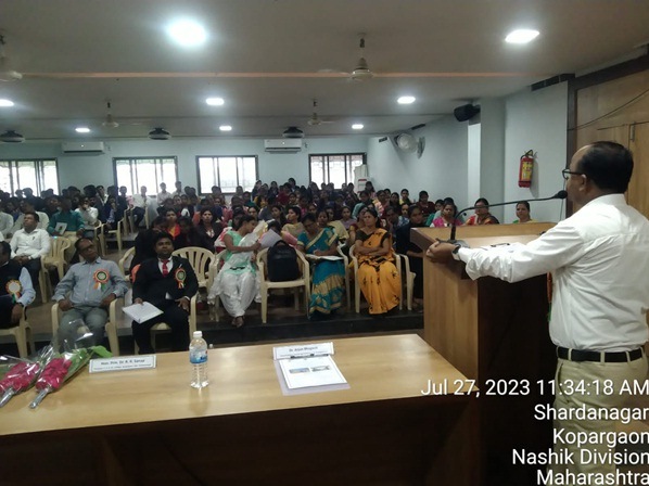 आपल्या उद्बोधनपर व्याख्यानात डॉ .गणेश वाघ यांनी नव्या राष्ट्रीय शैक्षणिक धोरणाचे स्वरूप, त्यातील अभ्यासक्रम, , मूल्यमापन, विद्यार्थी व शिक्षकांची जबाबदारी, आव्हाने आणि संधी अशा विविध बाबींची सविस्तर माहिती दिली. मार्मिक व्हिडिओचा आधार घेत केलेले त्यांचे हे विवेचन सर्वांनाच प्रभावित करणारे झाले. विद्यार्थी व शिक्षकांनी विचारलेल्या प्रश्नांची उत्तरेही डॉ. वाघ यांनी दिली. डॉ. सानप यांनी आपल्या अध्यक्षीय भाषणातून सांगितले की,नवीन शैक्षणिक धोरण हे बदलत्या युगाची गरज असून त्याचा सकारात्मवृतीने सर्वच घटकांनी स्वीकार व अभ्यास करण्याची गरज आहे.