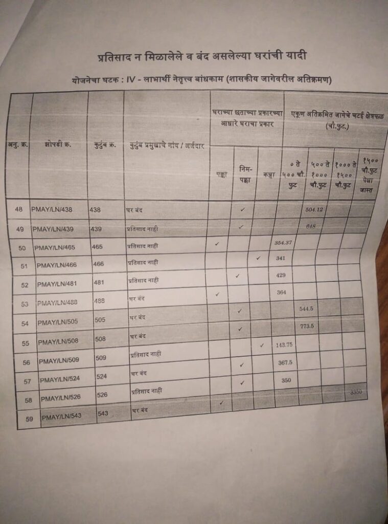 प्रतिसाद. न मिळालेल्या बंद घराची यादी नगरपरिषदेने प्रसिद्ध केली आहे ती खालील प्रमाणे