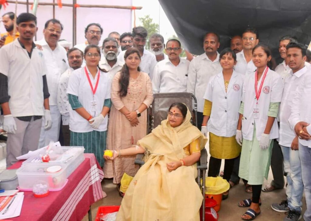 कोपरगाव प्रतिनिधी:- साहित्यरत्न लोकशाहीर अण्णाभाऊ साठे यांच्या १०३ व्या जयंतीनिमित कोपरगाव येथे आयोजित केलेल्या रक्तदान शिबिरात कोपरगाव विधानसभा मतदारसंघाच्या माजी आमदार तथा भाजप नेत्या स्नेहलताताई कोल्हे यांनी स्वेच्छेने रक्तदान केले. रक्तदान हे श्रेष्ठ दान असून, रक्तदानामुळे लाखो लोकांना जीवनदान मिळते. लोकशाहीर अण्णाभाऊ साठे यांच्या जयंतीचे औचित्य साधून आयोजित केलेले रक्तदान शिबीर हा अतिशय स्तुत्य उपक्रम आहे. युवकांनी सामाजिक बांधिलकीच्या भावनेतून रक्तदानासाठी पुढे येऊन अशा समाजोपयोगी उपक्रमांना हातभार लावला पाहिजे, असे मत स्नेहलताताई कोल्हे यांनी याप्रसंगी व्यक्त केले.