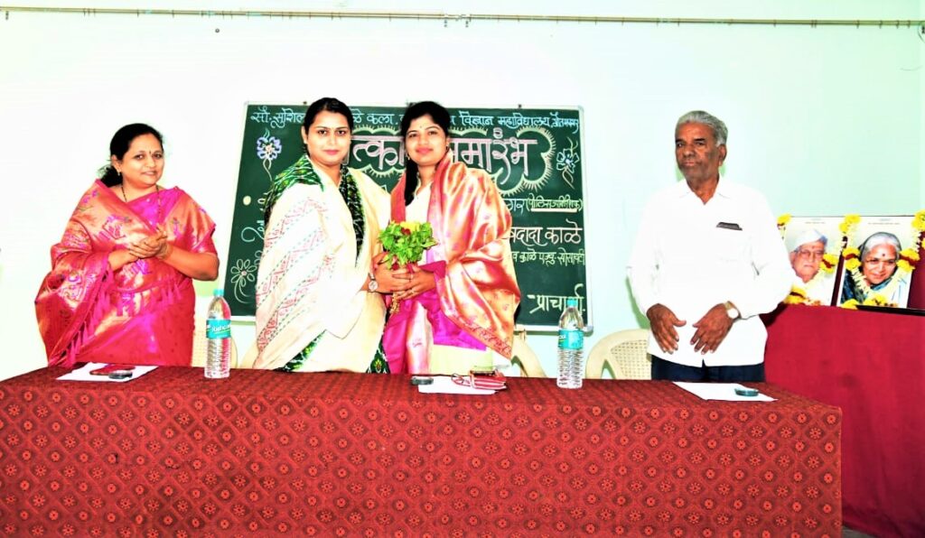 कार्यक्रमाचे प्रास्तविक व पाहुण्यांची परिचय करून देतांना महाविद्यालयाच्या प्राचार्या डॉ. सौ. विजया गुरसळ यांनी महाविद्यालय हे विद्यार्थी केंद्रीत असून विद्यार्थ्यांचा सर्वांगीण विकास होण्यासाठी संस्थेच्या सचिव सौ. चैतालीताई काळे यांच्या मार्गदर्शनाखाली नेहमीच अभिनव उपक्रम राबवीत असल्याचे सांगितले. कार्यक्रमाचे सूत्रसंचालन प्रा. उमाकांत कदम व प्रा. सागर मोरे यांनी केले. तर आभार कला शाखा प्रमुख प्रा.सौ. सुनीता शिंदे यांनी मानले.