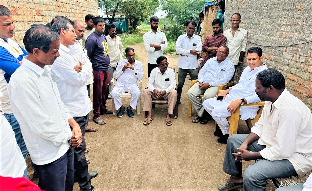 फोटो ओळ- उपचारा अभावी दुर्दैवी मृत्यू झालेल्या आदिवासी महिलेच्या कुटुंबाची आ. आशुतोष काळे यांनी भेट घेवून सांत्वन केले.
