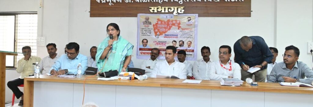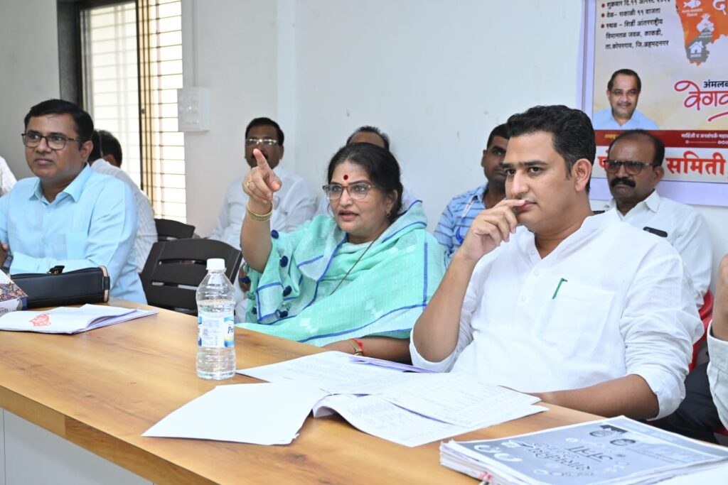 कोपरगाव तालुक्यातील काकडी येथे मुख्यमंत्री एकनाथ शिंदे, उपमुख्यमंत्री देवेंद्र फडणवीस व अजित पवार, महसूलमंत्री तथा जिल्ह्याचे पालकमंत्री राधाकृष्ण विखे पाटील यांच्या प्रमुख उपस्थितीत आयोजित करण्यात आलेल्या ‘शासन आपल्या दारी’ या उपक्रमाच्या तयारीनिमित्त बुधवारी (९ ऑगस्ट) कोपरगाव येथील पंचायत समिती कार्यालयाच्या सभागृहात आढावा बैठक घेण्यात आली. त्यावेळी त्या बोलत होत्या.