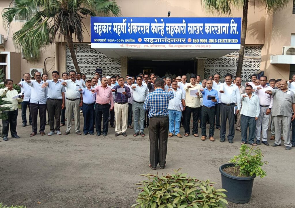 देशाचे पंतप्रधान नरेंद्र मोदी यांनी माझी माती माझा देश हे आवाहन तमाम भारतवासीयांसाठी अलीकडेच केले होते, त्याला सहकारमहर्षी शंकरराव कोल्हे सहकारी साखर कारखान्याचे अभ्यासू युवा अध्यक्ष विवेकभैय्या कोल्हे यांनी संजीवनी उद्योग समूहाचे अध्यक्ष बिपिनदादा कोल्हे, तत्कालीन प्रथम महिला आमदार स्नेहलताताई कोल्हे यांच्या मार्गदर्शनाखाली प्रतिसाद देत सर्व कामगारांनी तशी पंचप्रण शपथ नऊ ऑगस्ट क्रांतीदिनी घेतली आहे.