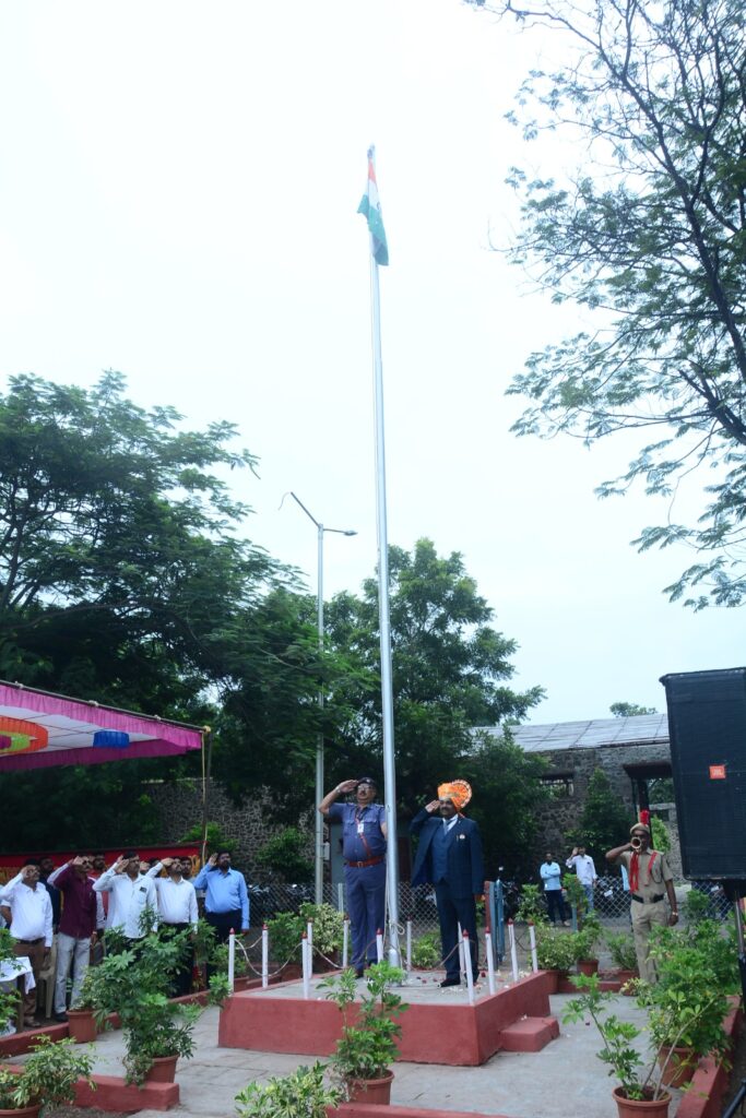 कोपरगाव प्रतिनिधी:- कोपरगाव तालुक्यातील साकरवाडी येथील गोदावरी बायोरिफायनरीज लि. मध्ये मंगळवार दिनांक 15 ऑगस्ट २०२३ रोजी भारताचा स्वातंत्रदिन मोठ्या उत्साहात साजरा करण्यात आला. यावेळी कारखाना कार्यस्थळावर डायरेक्टर श्री. सुहास गोडगे यांच्या हस्ते ध्वजावंदन करण्यात आले. गोदावरी बायोरिफायनरीज लि. मधील सर्व सुरक्षा अधिकारी, सोमैया विद्या मंदिर साकरवाडी, लक्ष्मीवाडी व शारदा इंग्लिश मेडियम स्कूल कोपरगाव येथील विद्यार्थ्यांनी नेत्रदीपक व शिस्तबद्द संचलन करून मानवंदना दिली.