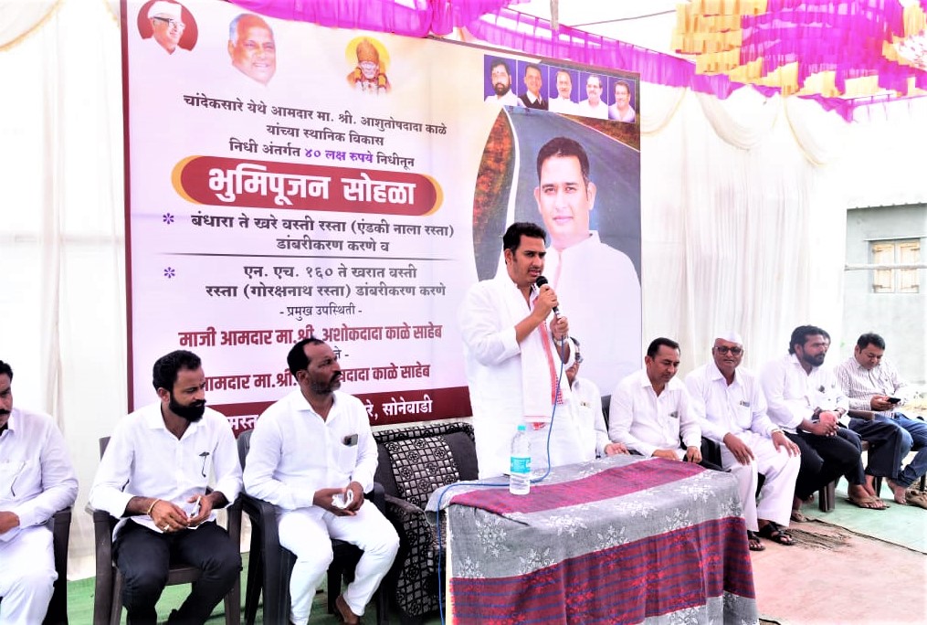 कोपरगाव मतदार संघातील चांदेकसारे येथील ४० लक्ष निधीतून करण्यात येणाऱ्या एंडकी नाला रस्ता व गोरक्षनाथ रस्ता या दोन्ही रस्त्यांच्या डांबरीकरणाच्या कामाचे भूमिपूजन नुकतेच आ. आशुतोष काळे यांच्या हस्ते करण्यात आले याप्रसंगी ते बोलत होते. ते पुढे म्हणाले कि, मतदार संघातील विकासाचा अनुशेष भरून काढण्यासाठी मतदार संघातील प्रत्येक गावाच्या विकासासाठी नागरिकांना अपेक्षित असलेल्या विकास कामांसाठी निधी दिल्यामुळे रस्ते, पाणी, आरोग्य अशा विविध समस्या सुटल्या आहेत. आपण दिलेल्या आशीर्वादातून मतदार संघासाठी २१०० कोटी निधी आणला असून हजारो कोटीचे प्रस्ताव मंजुरीच्या अंतिम टप्प्यात आहेत. त्यामुळे येत्या काळात मतदार संघासाठी अजून निधी मिळणार असून मतदार संघातील सर्वच विकास कामे मार्गी लागणार आहेत. त्यामुळे येत्या काळात विकासाचे बहुतांशी प्रश्न सुटलेले असतील असा त्यांनी व्यक्त विश्वास व्यक्त केला. चांदेकसारे व सोनेवाडीच्या नागरिकांची मागील अनेक वर्षापासूनची मागणी आ. आशुतोष काळे यांनी पूर्ण करून या दोन्ही रस्त्यांच्या डांबरीकरणाच्या कामास प्रारंभ झाल्यामुळे चांदेकसारे व सोनेवाडीच्या नागरिकांनी आ. आशुतोष काळे यांचे आभार मानले आहे.