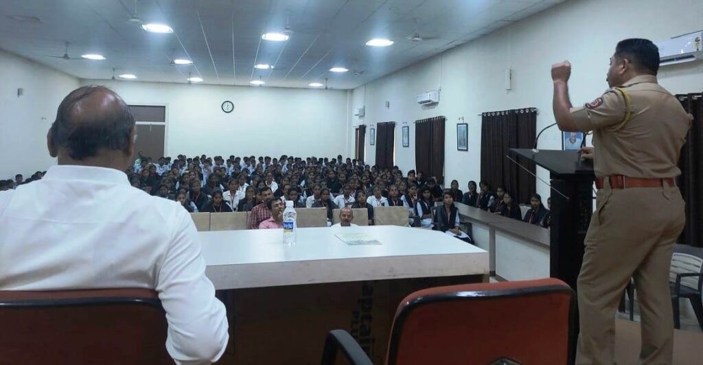 कोपरगाव प्रतिनिधी:- स्थानिक के.जे.सोमैया (वरिष्ठ) व के.बी. रोहमारे (कनिष्ठ) महाविद्यालयात कोपरगाव शहर पोलीस स्टेशनच्या वतीने आज ‘विद्यार्थी सु-संवाद’ उपक्रम आयोजित करण्यात आला. या उपक्रमात कोपरगाव शहरचे पोलीस निरीक्षक प्रदीप देशमुख यांनी महाविद्यालयीन विद्यार्थ्यांशी सु-संवाद साधला. यावेळी त्यांनी भारताची गौरवशाली परंपरा अधोरेखित करून विद्यार्थ्यांमध्ये सामाजिक, धार्मिक व जातीय सलोखा राखण्याच्या दृष्टिने मार्गदर्शन केले. विद्यार्थी जीवन हा मानवी जीवनातील सुवर्णकाळ आहे. या काळात प्रत्येकाने शिस्त अंगीकारणे महत्वाचे आहे. शिस्ततेमुळे विद्यार्थी केवळ यशस्वीच होत नाहीत तर तो जबाबदार नागरिकही बनत असतो. विद्यार्थ्यांनी महाविद्यालयीन जीवनात आपल्या व्यक्तिमत्त्वाचा सर्वांगिण विकास करून व अंगी शिस्त बाळगून विद्यार्थ्यांवर होत असलेल्या बेशिस्त वर्तनाचा शिक्का पुसून टाकावा असे आव्हानही त्यांनी यावेळी केले. ‘विद्यार्थी सुसंवाद’ उपक्रमाच्या प्रास्ताविकात प्राचार्य डॉ.बी.एस.यादव यांनी महाविद्यालयात शिकत असलेल्या विद्यार्थ्याच्या पालकत्वाची महाविद्यालयाने घेतलेली जबाबदारी नमूद करतांनाच महाविद्यालयाच्या शैक्षणिक जडणघडणीत कोपरगाव पोलीस स्टेशनच्या वतीने सतत मिळत असलेल्या सहकार्याचे कौतुक केले. या ‘विद्यार्थी सु-संवाद’ कार्यक्रमाच्या अध्यक्षस्थानी संस्थेचे विश्वस्त मा. संदिपराव रोहमारे हे उपस्थित होते. कार्यक्रमाचे सूत्रसंचालन डॉ. संजय दवंगे यांनी तर आभारप्रदर्शन कनिष्ठ महाविद्यालयाचे उप-प्राचार्य प्रा. बी.आर.सोनवणे यांनी केले. या ‘विद्यार्थी सु-संवाद’ कार्यक्रमासाठी महाविद्यालयाचे रजिस्ट्रार डॉ. अभिजित नाईकवाडे, प्रा. गोरखनाथ डोंगरे यांच्यासह कनिष्ठ महाविद्यालयातील सर्व प्राध्यापक व बहुसंख्य विद्यार्थी उपस्थित होते.