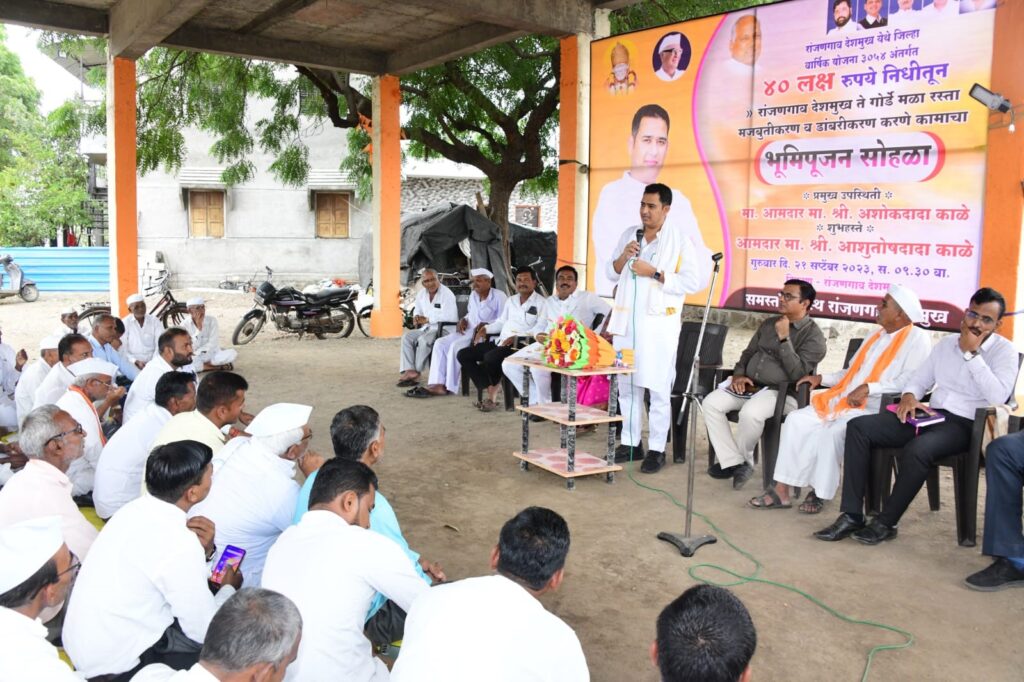 रांजणगाव देशमुख येथे जिल्हा वार्षिक योजना ३०५४ अंतर्गत ४० लक्ष रुपये निधीतून करण्यात येणाऱ्या रांजणगाव देशमुख ते गोर्डे मळा रस्ता मजबुतीकरण व डांबरीकरण करणे कामाचे भूमीपूजन आ. आशुतोष काळे यांच्या हस्ते पार पडले याप्रसंगी ते बोलत होते. ते पुढे म्हणाले की, मतदार संघात रस्ते विकासाचा मोठा अनुशेष असल्यामुळे विकासाला मर्यादा येत होत्या. त्यामुळे रस्ते विकासाचा अनुशेष भरून काढण्याचे उद्दिष्ट् डोळ्यासमोर ठेवून रस्ते विकासाला मोठ्या प्रमाणात निधी मिळविण्यात यश आले त्यामुळे संपूर्ण मतदार संघात रस्त्यांचे जाळे निर्माण झाले असले तरी यामागे मतदार संघातील जनतेचे आशीर्वाद असल्यामुळेच हे शक्य झाले आहे. खड्ड्याच्या रस्त्यांचा प्रवास करतांना झालेला त्रास सहन करणाऱ्या मतदार संघातील नागरिकांची रस्त्यांची मोठी अडचण दूर झाल्यामुळे बहुतांश रस्त्यांचा प्रवास सुखकर झाला आहे. त्यामुळे येणाऱ्या जाणाऱ्या प्रत्येक नागरिकाकडून रस्त्याच्या निर्मितीबाबत कौतुकास्पद शब्द बाहेर पडतात त्याचे मोठे समाधान मिळत आहे. रस्त्यांच्या जाळ्यामुळे अनेक गावे मुख्य रस्त्यांना जोडली जावून विकासाला चालना मिळाली असून यापुढील काळातही आपल्या आशीर्वादाने उर्वरित सर्वच रस्त्यांचा विकास करणार असल्याचे आ. आशुतोष काळे यांनी सांगितले. तसेच निळवंडे डाव्या कालव्यातून तात्पुरत्या एस्केपमधून गावतळी, पाझर तलाव, बंधारे भरून देण्याच्या सूचना आ. आशुतोष काळे यांनी पाटबंधारे विभागाला दिल्या व निळवंडे डाव्या कालव्याची पाहणी केली.