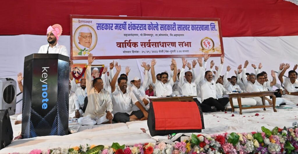 केंद्र सरकारने सन २०२३-२४ च्या गळीत हंगामासाठी उसाच्या एफआरपीमध्ये मागील वर्षाच्या तुलनेत १०० रुपये प्रतिटन वाढ केली आहे. एफआरपीसोबतच केंद्र सरकारने साखरेच्या किमान विक्री मूल्यात (एमएसपी) सुद्धा वाढ करावी, अशी मागणी विवेकभैय्या कोल्हे यांनी यावेळी केली. सहकार क्षेत्र व साखर उद्योगातील स्थित्यंतराचा आढावा घेत, सध्याची दुष्काळी परिस्थिती लक्षात घेता चारा पिकासाठी कारखान्यातर्फे मोफत वैरण बियाणे पुरविण्याची घोषणा त्यांनी केली.