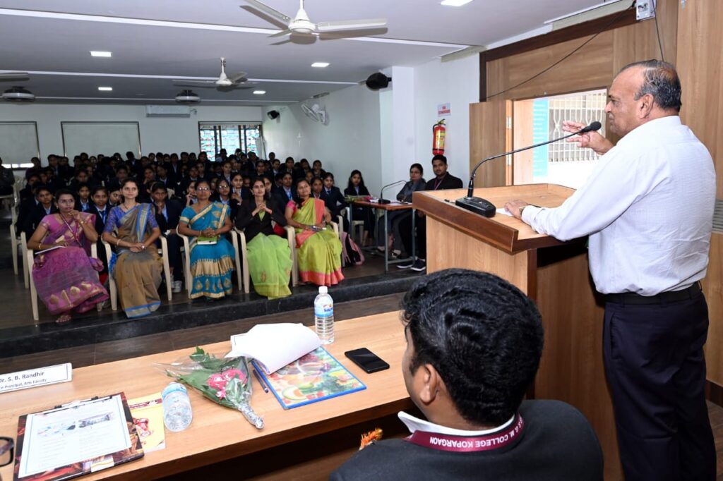 या कार्यक्रमाच्या अध्यक्षस्थानी महाविद्यालयाचे प्र. प्राचार्य, डॉ. आर. आर. सानप हे होते. त्यांनी आपल्या अध्यक्षीय मनोगतातून, सुसज्ज व संपन्न असलेल्या वाणिज्य विभागाचे कौतुक करून, कुणाही विद्यार्थ्यांनी स्वतःला कमी लेखू नये, संधींचा उपयोग करून घेऊन आपले करिअर घडवावे. वाणिज्य मंडळाने उपलब्ध करून दिलेल्या विविध उपक्रमात सहभागी होऊन आपल्या क्षमता ओळखाव्या, असे सांगितले.