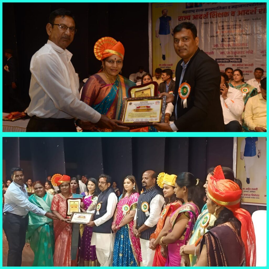 पनवेल येथे पार पडलेल्या नगरपालिका महानगरपालिका शिक्षक संघ महाराष्ट्र राज्य यांचे वतीने दिले जाणारे सन २०२२-२३ चे राज्यस्तरीय आदर्श शिक्षक पुरस्कार पनवेलचे लोकप्रिय आमदार प्रशांत ठाकूर यांचे हस्ते प्रदान करण्यात आले. अहमदनगर जिल्ह्यातील कोपरगाव नगरपालिकेच्या शाळा क्र. ६ च्या मुख्याध्यापिका सौ. कल्पना निंबाळकर यांना आदर्श मुख्याध्यापिका व नगरपालिका शाळा नं.५ च्या शिक्षिका सौ. नसरीन पठाण यांना राज्यस्तरीय आदर्श शिक्षक पुरस्काराने सन्मानित करण्यात आले.