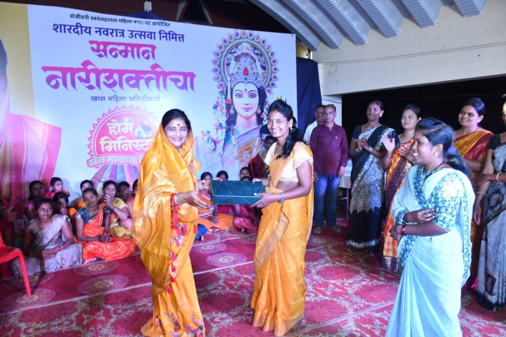 शारदीय नवरात्रोत्सवानिमित्त सर्व उपस्थित महिला व ग्रामस्थांना शुभेच्छा देऊन स्नेहलताताई कोल्हे म्हणाल्या, रोजच्या धकाधकीच्या जीवनातून माता-भगिनींना विरंगुळा व आनंदाचे क्षण मिळावे, त्यांच्या सुप्त कलागुणांना वाव मिळावा, या उद्देशाने संजीवनी महिला स्वयंसहाय्यता बचत गटाच्या वतीने खास महिलांसाठी सन्मान नारी शक्तीचा ‘होम मिनिस्टर-खेळ मानाच्या पैठणीचा’ या कार्यक्रमाचे आयोजन केले. या कार्यक्रमात महिलांनी मोठ्या उत्साहाने सहभागी होऊन स्त्रीशक्तीचा जागर केला. महिलांच्या चेहऱ्यावरील आनंद पाहून मला खूप समाधान वाटले. सन २००० मध्ये मी महिला बचत गटापासून सामाजिक कार्य सुरू केले. मी महिला बचत गटाच्या माध्यमातून ग्रामीण भागातील महिलांना संघटित करून त्यांच्यामध्ये आत्मविश्वास जागृत केला, त्यांना आर्थिक बचतीची सवय लावून बँक व्यवहाराची माहिती करून दिली. उंबऱ्याच्या आत अडकलेल्या माता-भगिनींना समाजाच्या प्रवाहात आणले, त्यांना उद्योग-व्यवसाय सुरू करण्यासाठी अर्थसाह्य करून आर्थिकदृष्ट्या स्वावलंबी बनवले. समाजकारण व राजकारण करताना महिलांचे प्रश्न सोडविण्यास मी सतत प्राधान्य दिले. माजी मंत्री स्व. शंकरराव कोल्हेसाहेब यांच्या आदर्श विचारावर संजीवनी उद्योग समुहाचे अध्यक्ष बिपीनदादा कोल्हे, युवा नेते विवेकभैय्या कोल्हे व आपण जनसेवेचे व्रत स्वीकारले असून, कोपरगाव मतदारसंघातील विविध प्रश्न सोडविण्यास जनतेने कोल्हे परिवाराला साथ द्यावी, असे आवाहन त्यांनी केले.