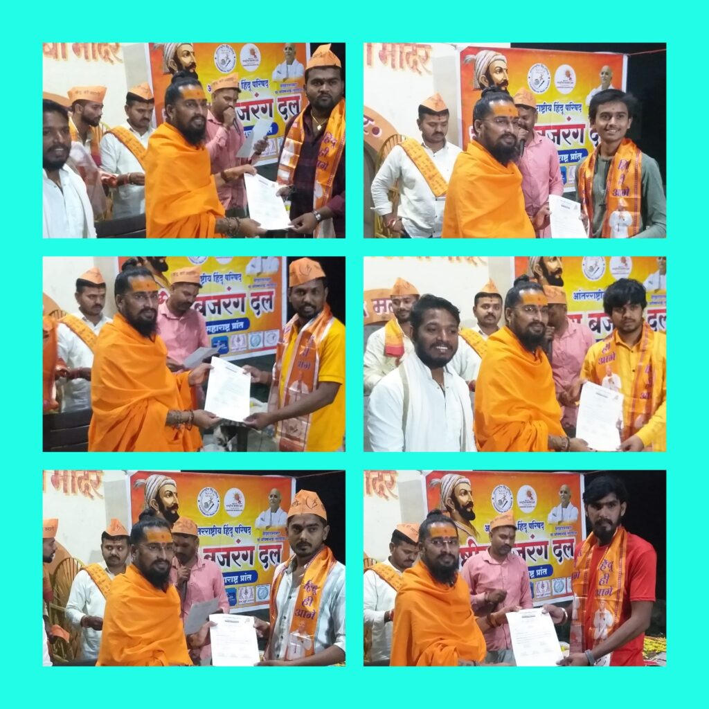 गुरुवार १९ ऑक्टोबर रोजी परमपूज्य कैलासनंदगिरी महाराज यांच्या शुभहस्ते राष्ट्रीय बजरंग दल व छात्र परिषद यांच्या नियुक्ती करण्यात आल्या. कोपरगाव तालुका संघटक पदी शुभम जहाडदे यांची तसेच शहराध्यक्षपदी राहुल शिरोदे, शहर मंत्री अक्षय मंजुळ, शहर संघटक गणेश भसाळे, गणेश शेजवळ अध्यक्ष, संयोजक सौरभ सांगळे तर यश कुहीरे यांची शहर सहसंयोजकपदी नियुक्ती करण्यात आली. या नियुक्तीबद्दल सर्वांचे अभिनंदन करण्यात आले असून पुढील वाटचालीसाठी शुभेच्छा देण्यात आल्या.