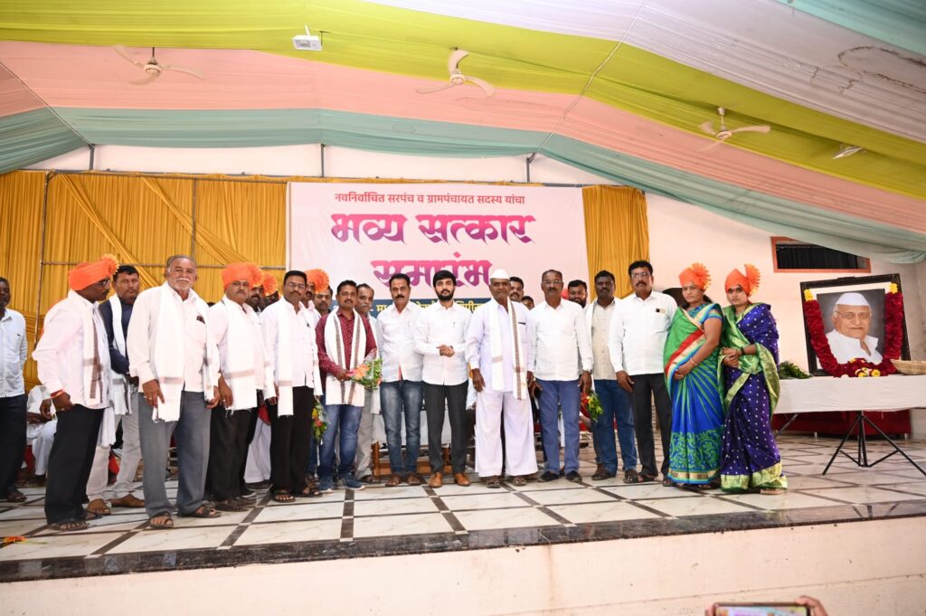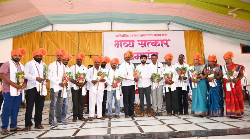 नुकत्याच पार पडलेल्या ग्रामपंचायत निवडणुकीत विजयी झालेल्या राहता तालुक्यातील नवनिर्वाचित सरपंच आणि सदस्य यांचा सत्कार सोहळा कोल्हे कारखान्याचे चेअरमन युवानेते विवेकभैय्या कोल्हे व मान्यवरांच्या शुभहस्ते साई विठ्ठला लॉन्स राहता येथे पार पडला.या प्रसंगी बोलताना विवेकभैय्या कोल्हे म्हणाले की ग्रामपंचायत ही ग्रामीण विकासाचे केंद्र आहे.निवडणुका संपल्या की राजकारण संपले पाहिजे.विरोधाला विरोध करून काम करणे ही आमची पद्धत नाही.या पूर्वी देखील संस्था हित बघून श्री गणेश कारखाना निवडणुकीत तुम्ही हाक दिली त्याला आम्ही प्रतिसाद दिला तसेच आगामी काळात देखील ज्या ज्या निवडणूक येतील त्यात खंबीरपणे तुमच्या सोबत उभे राहू.पुणतांबा,वाकडी,चितळी या मोठ्या ग्रामपंचायत जिंकून जनतेचा कौल स्पष्ट झाला आहे.जे सदस्य विजयी झाले त्यासह जे कोणत्याही दबावाला बळी न पडता लढले ही खरी ताकद आहे.