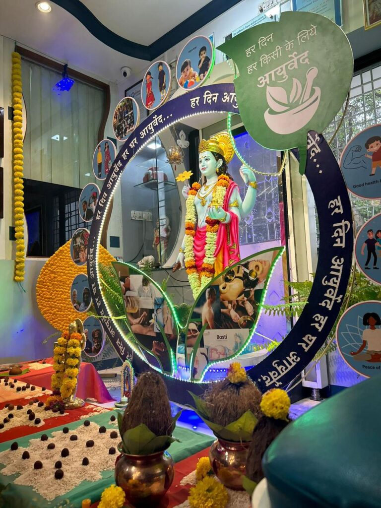 “*आयुष मंत्रालयाने यंदा हर दिन हर किसी के लिये आयुर्वेद असे घोषवाक्य दिले आहे. आयुर्वेदाचा घरोघर व प्रत्येक व्यक्तीपर्यंत प्रसार आणि प्रचार व्हावा, हा हेतू त्यामागे आहे. धन्वंतरी पूजनानिमित्त आम्ही हा विषय जास्ती जास्त लोकांपर्यंत नेण्याचा प्रयत्न करीत आहोत. त्यासाठी दरवर्षाप्रमाणेच या वर्षीही प्रत्येकासाठी आयुर्वेद हा संदेश देणाऱ्या फलकचक्राची सुंदर अशी निर्मिती करण्यात आली होती.