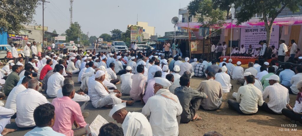 चौकट- उपोषणास पाठिंबा म्हणून शेतकऱ्यांनी रस्ता रोको आंदोलन केले. जनभावना तिव्र असतानाही प्रशासनाकडून योग्य ती कारवाई व ठोस आश्वासन न दिल्याने उपोषणकर्ते अँड. योगेश खालकर यांनी शनीवार, दि.१८ रोजी आत्मदहन करण्याचा इशारा दिला आहे.