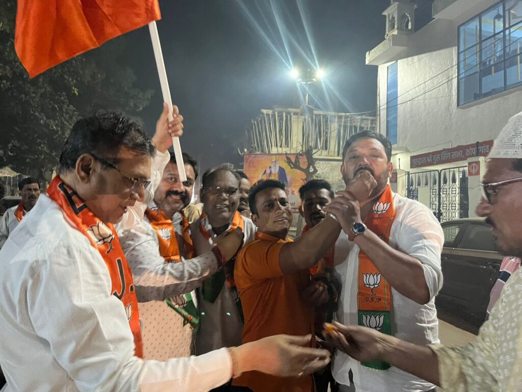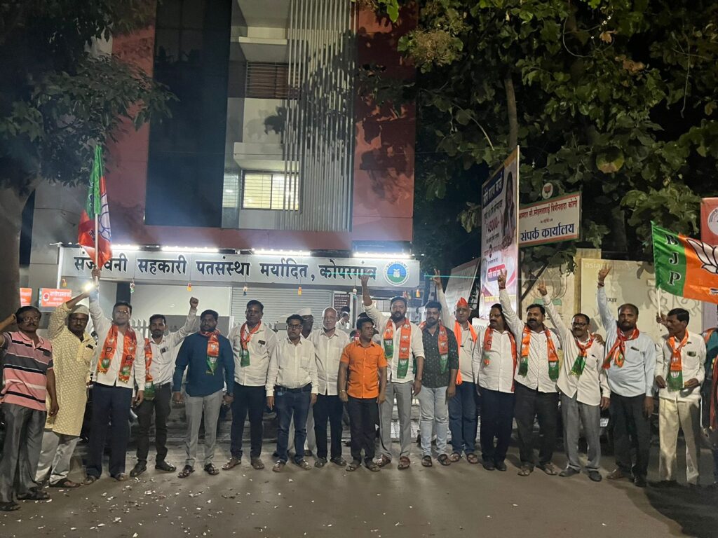 पंतप्रधान नरेंद्र मोदी व भाजपच्या विचारांवर व विकासकामांवर विश्वास ठेवून भाजपला बहुमतांनी विजयी केल्याबद्दल कोल्हे यांनी मतदारांचे मन:पूर्वक आभार मानले असून, सर्व विजयी उमेदवारांचे अभिनंदन केले आहे. राजस्थान, मध्य प्रदेश, छत्तीसगड व तेलंगणा या चार राज्यांतील विधानसभा निवडणुकांचे निकाल रविवारी (३ डिसेंबर २०२३) जाहीर झाले. राजस्थान, मध्य प्रदेश, छत्तीसगडमध्ये भाजपने मिळवलेल्या अभूतपूर्व विजयाबद्दल आज सायंकाळी कोपरगाव येथे शहर व तालुका भाजपच्या वतीने माजी आमदार स्नेहलताताई कोल्हे यांच्या जनसंपर्क कार्यालयाबाहेर फटाके वाजवून व लाडू वाटून आनंदोत्सव साजरा करण्यात आला. यावेळी भाजप कार्यकर्त्यांनी जल्लोष करत, पंतप्रधान नरेंद्र मोदी तुम आगे बढो, हम तुम्हारे साथ है,भारतीय जनता पार्टीचा विजय असो, अशा जोरदार घोषणा देत सारा परिसर दणाणून सोडला होता. यावेळी भाजपचे शहराध्यक्ष डी. आर. काले, भाजयुमोचे शहराध्यक्ष अविनाश पाठक, माजी नगराध्यक्ष राजेंद्र सोनवणे, महावीर दगडे, नरेंद्र डंबीर, गोपीनाथ गायकवाड, राजेंद्र बागुल, दादासाहेब नाईकवाडे विजय चव्हाणके, जयप्रकाश आव्हाड, जयेश बडवे, खलिकभाई कुरेशी, फकिर मोहम्मद पैलवान, इलियासभाई खाटीक, रहीम शेख, सतीश नरोडे, शंकर बिऱ्हाडे, किरण सुपेकर, दत्ता कोळपकर, सलीम पठाण, रोहन दरपेल, सिद्धार्थ साठे, रोहित कनगरे, रवींद्र लचुरे, सोमनाथ ताकवले, सुजल चंदनशिव, प्रभुदास पाखरे, संजय खरोटे आदींसह भाजप पदाधिकारी व कार्यकर्ते मोठ्या संख्येने उपस्थित होते.