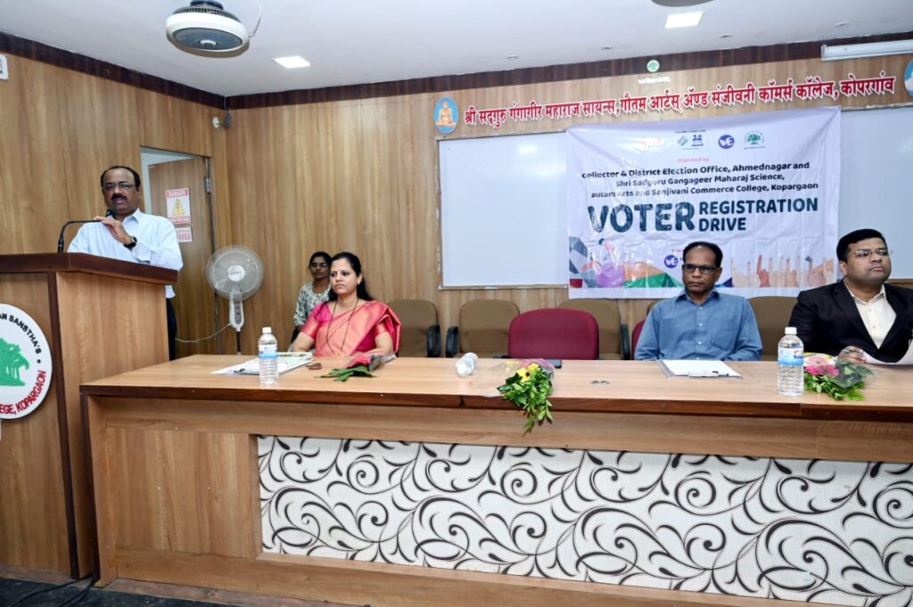 कोपरगाव प्रतिनिधी:- रयत शिक्षण संस्थेच्या,श्री.सदगुरु गंगागीर महाराज सायन्स,गौतम आर्ट्स आणि संजीवनी कॉमर्स कॉलेज, कोपरगाव मध्ये दि.६डिसेंबर २०२३ रोजी जिल्हाधिकारी कार्यालय,अहमदनगर,वर्शिप अर्थ फौंडेशन(अहमदनगर शाखा) आणि महाविद्यालय यांचे संयुक्त विद्यमाने मतदार नोंदणी कार्यशाळा संपन्न झाली. या कार्यशाळेत १८ वर्ष पूर्ण असणाऱ्या विद्यार्थ्यांनी मोबाईल च्या माध्यमातून मतदार नोंदणी करण्यासंदर्भात मार्गदर्शन करण्यात आले.