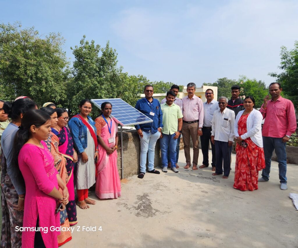 दिनांक 13/12/2023 रोजी महिला आर्थिक विकास महामंडळ अहमदनगर अंतर्गत स्थापित क्रांती लोकसंचालीत साधन केंद्र कोपरगाव तालुक्यातील गोधेगाव या ठिकाणी सप्तश्रृंगी महिला स्वयंम सहाय्यता बचत गटातील श्रीमती बेबीताई सयाजी कानडे यांनी महिला आर्थिक विकास महामंडळ माविम अहमदनगर व सेल्को इंडिया व गेम यांच्या संयुक्त विद्यमाने नवतेजस्विनी कार्यक्रमातील महिलेच्या उद्योग व्यवसाय मध्ये वाढ व्हावी व विजेची बचत व्हावी आर्थिक बचत व्हावी तसेच विजे अभावी काम थांबू नये महिला च्या उत्पन्नात वाढ व्हावी म्हणून 50% मदत सोलर सिस्टिम घेण्यास महिलांना देण्यात आली तसेच उरलेली 50% रक्कम हे SHG बचत गटामधून महिलांनी दिली. त्यानंतर सोलार बेस्ड शिलाई मशीन चे इंस्टॉलेशन करण्यात आले. त्यासाठी दोन महिने सेल्को इंडिया तसेच महाविमं मार्फत अहमदनगर जिल्यामध्ये कोपरगाव, राहुरी व अहमदनगर येथे महिला इंटरप्रेनर यांना मोफत ट्रैनिंग देण्यात आली. जवळ जवळ दोन हजार महिलांनी त्यात सहभाग नोंदवला.प्रथम उदघाटन प्रसंगी महिला आर्थिक विकास महामंडळ अहमदनगर चे जिल्हा समनवय अधिकारी श्री संजय गर्जे सर बेसिक संस्था श्री महेश बायस व सेल्को इंडिया चे डेप्युटी जनरल मॅनेजर श्री गुरुप्रकाश शेट्टी सर तसेच एरिया मॅनेजर महाराष्ट्र श्री संतोष कुमार सर उपस्थित होते.यांनी लाभार्थी सोबत चर्चा करण्यात आली व पाहणी करण्यात आली या साठी सहयोगिनी रोहिणी दंडवते यांनी नियोजन केले व्यवस्थापक सविता परदेशी क्रांती लोकसंचालीत साधन केंद्र कोपरगाव यांनी cmrc च्या कामाची माहिती दिली या वेळी cmrc अध्यक्ष उषा निकम तसेच ,रुपाली संवत्सर सहयोगिनी अलका बढे ,अलका पंङोरे स्वती पगारे व सर्व cmrc स्टाफ समवेत चर्चा करून पुढील नियोजन करणे बाबत dco सर यांनी मार्गदर्शन केले. ह्यावेळी गटातील महिला उपस्थित होत्या व लेखापाल सोनाली शिंदे यांनी क्रांती cmrc कोपरगाव यांनी आभार प्रदर्शन केले.