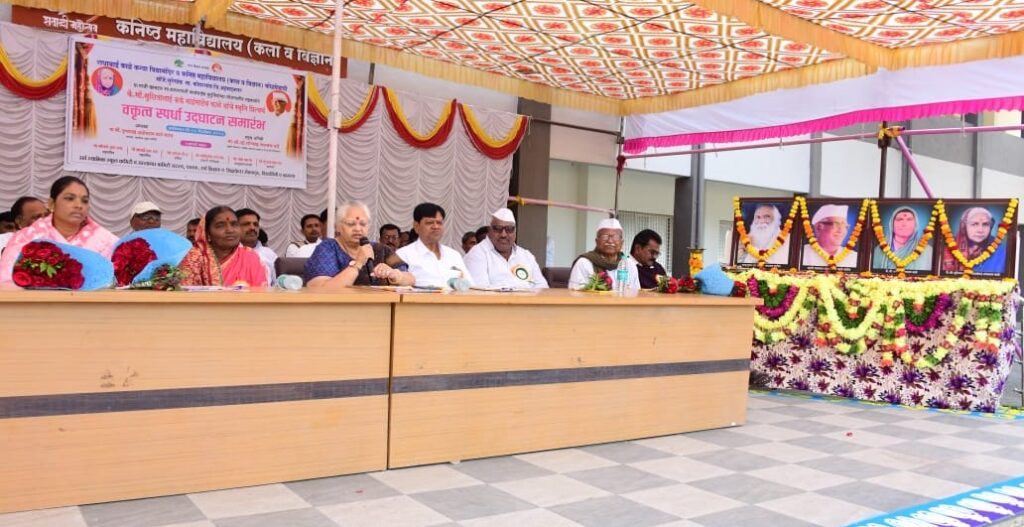 फोटो ओळ:- सौ.सुशीलामाई काळे यांच्या स्मरणार्थ आयोजित २४ व्या राज्यस्तरीय वकृत्व स्पर्धेच्या उदघाटन प्रसंगी मार्गदर्शन करतांना सौ.पुष्पाताई काळे समवेत मान्यवर.
