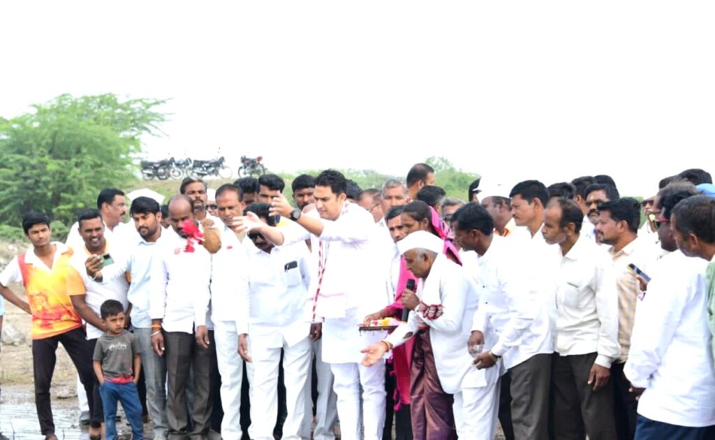 फोटो ओळ- निळवंडेच्या डाव्या कालव्यातून भरण्यात आलेल्या बंधाऱ्याच्या पाण्याचे जलपूजन करतांना आ.आशुतोष काळे.