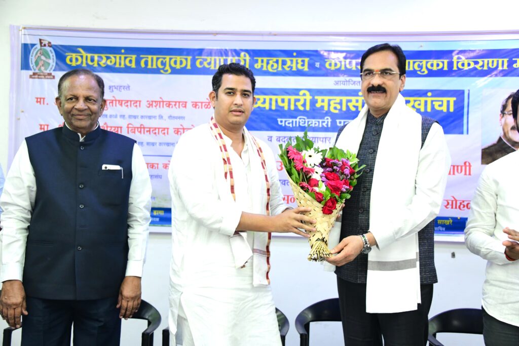 यावेळी महाराष्ट्र राज्य सहकारी पतसंस्था फेडरेशनचे अध्यक्ष काका कोयटे,सहकार महर्षी कोल्हे कारखान्याचे अध्यक्ष विवेक कोल्हे, तुलसीदास खुबाणी, महात्मा गांधी जिल्हा प्रदर्शन चॅरिटेबल ट्रस्टचे सचिव धरमचंद बागरेचा, व्यापारी महासंघाचे अध्यक्ष सुधीर डागा, प्रदीप साखरे, अजित लोहाडे, राजेंद्र बंब, राम थोरे, सुमित भट्टड, मोहन उकिरडे, किरण शिरोडे, तुषार घोडके, गुलशन होडे, संदीप राशिकर, पवन डागा, संदीप काबरा, प्रदीप मुंदडा, शाम जंगम आदींसह राष्ट्रवादी युवक काँग्रेसचे जिल्हाध्यक्ष कृष्णा आढाव, सोशल मेडिया सेलचे प्रदेश सरचिटणीस अशोक आव्हाटे, माजी नगरसेवक मंदार पहाडे, रमेश गवळी, गौतम बँकेचे माजी संचालक सुनील शिलेदार, राजेंद्र खैरनार, शैलेश साबळे, गणेश बोरुडे, सोमनाथ आढाव, नारायण लांडगे, संतोष शेजवळ, अनिरुद्ध काळे आदींसह व्यापारी बांधव उपस्थित होते.